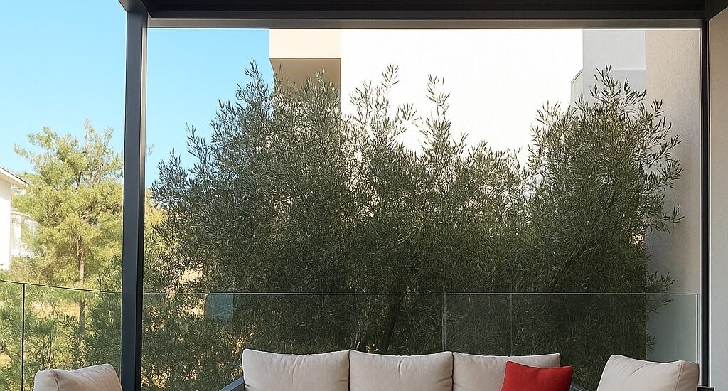 Bioclimatic pergola in custom dimensions and a color selection that harmonizes with and enhances the aesthetics of the space. A newly built residence was completed with the installation of a pergola in the outdoor terrace area.