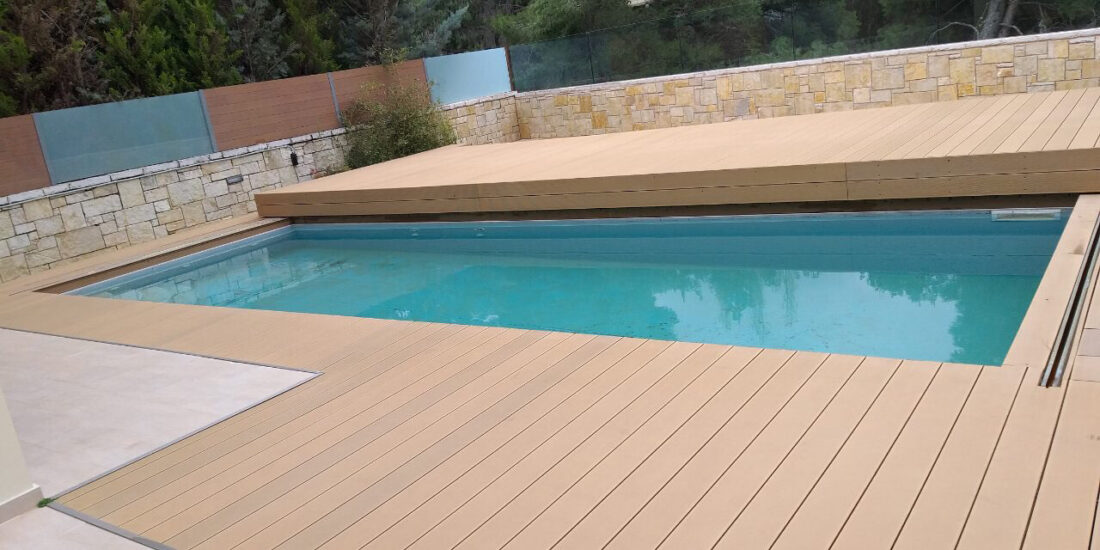 Pool coverage with a deck. At Cospico, we offer solutions that harmonize with your space and aesthetics.