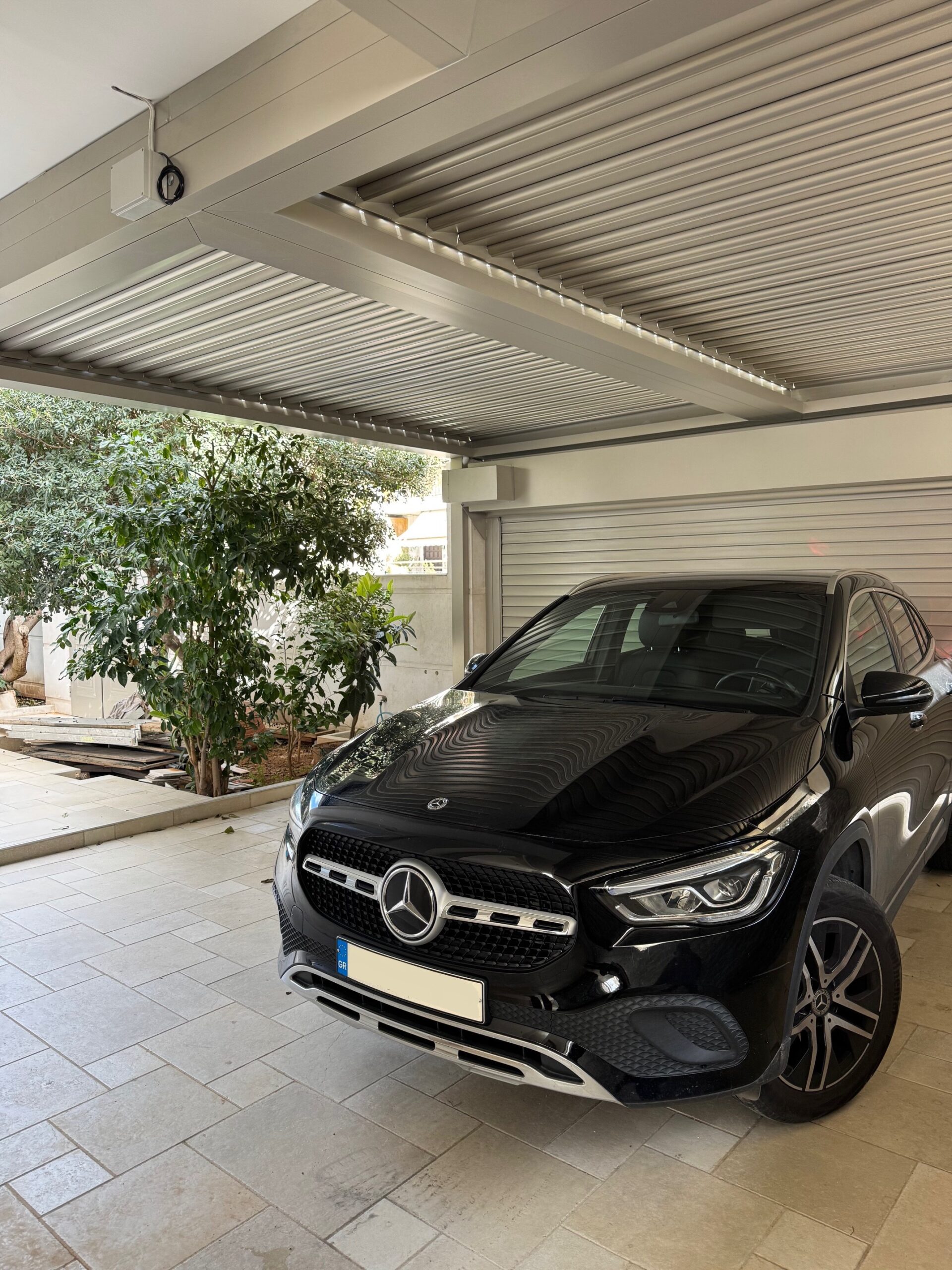 With the Cospibio bioclimatic pergola, you can transform your parking area into a fully protected garage. The adjustable roof louvers allow you to control the light, reduce the temperature, and protect your vehicle from sun, rain, and dust, keeping it in excellent condition all year round.
